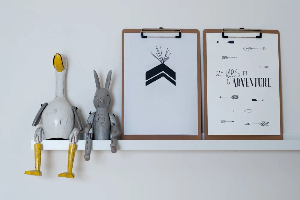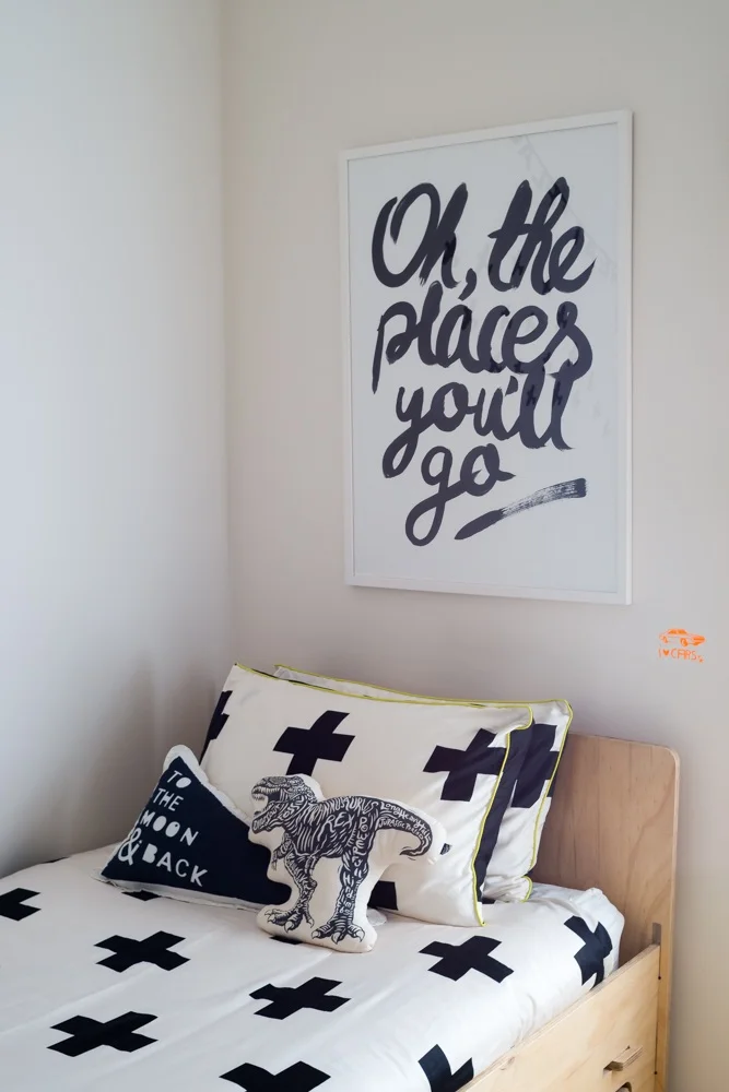 On the day of shooting Max's room I had the idea to put some prints on a clipboard to create an easy and affordable way to display unframed art. The clipboards were a whole $3.99 from Officeworks! Say Yes to Adventure print from Global Kidz.