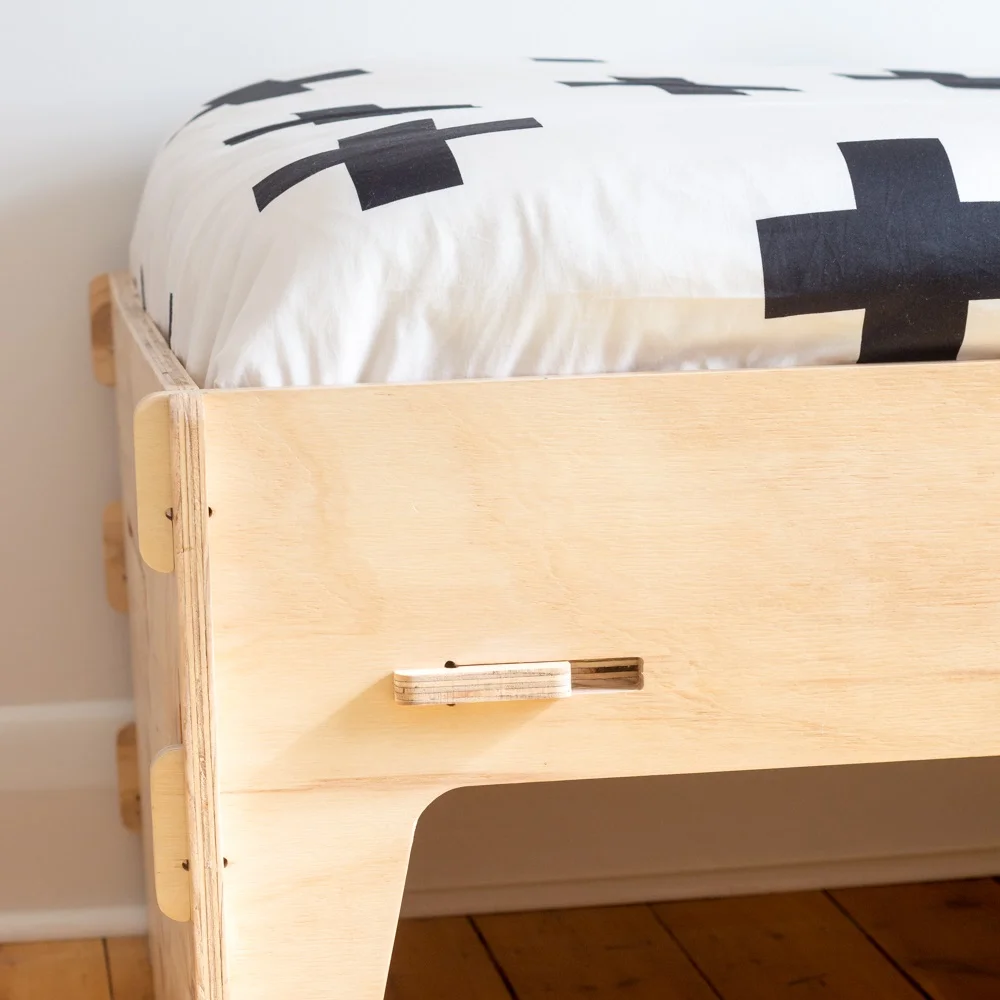 We live in a small 2 bedroom semi-detached maisonette so space is at a premium. We needed a bed with storage. So we designed and made our own bed. As you do! The brief was simple - needed oodles of storage, could age with Max through the years and had to look good. My husband (@angus_design) designed and made a flat pack plywood bed with two underneath storage compartments on castor wheels. The storage units can be moved around and fit an amazing 350 litres worth of stuff. Storage is king! It's a bed that will stay with him for years, from toddler to teen.