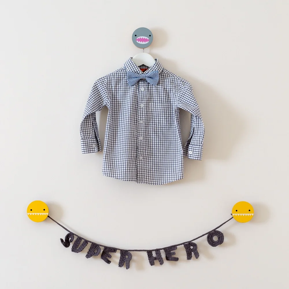 Zaney the Zebra soft toy/Super Hero garland: La De Dah Kids (got ours from Have You Met Charlie?)